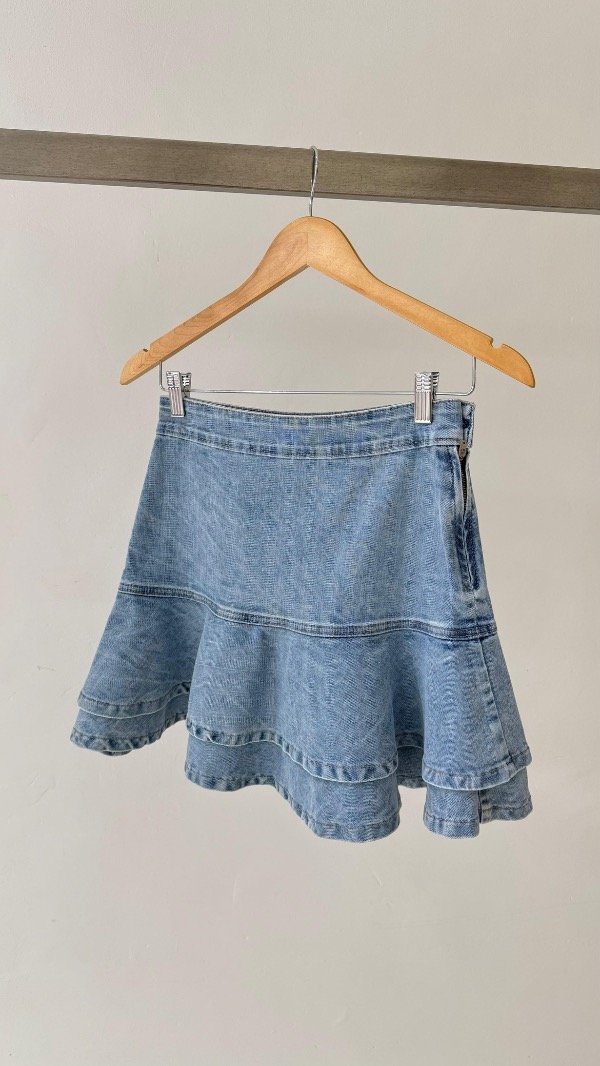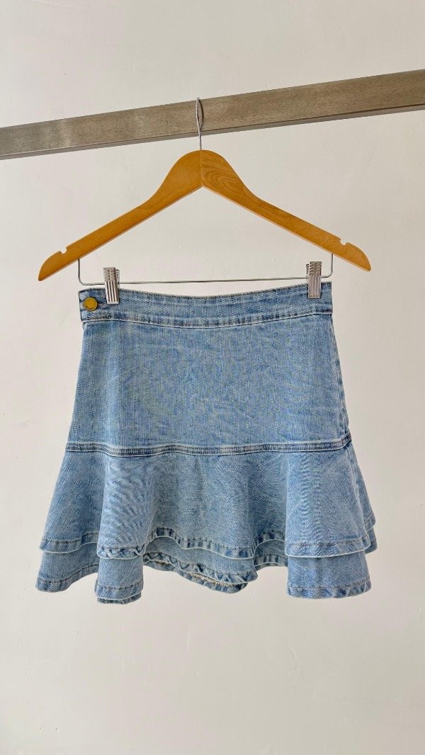 Mini de jean tiro alto con volados