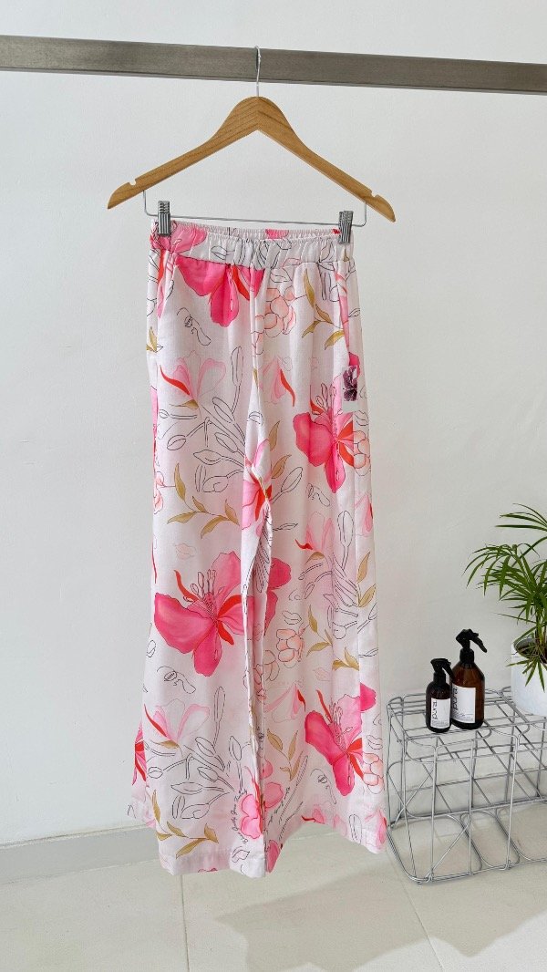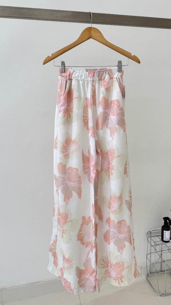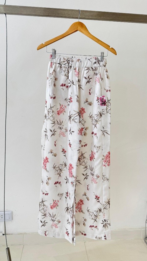 Pantalon de lino estampado. Talle unico, abarca de un S al L