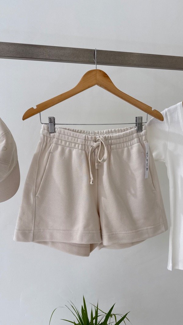 Short de algodón rústico con cintura elastizada y regulable.