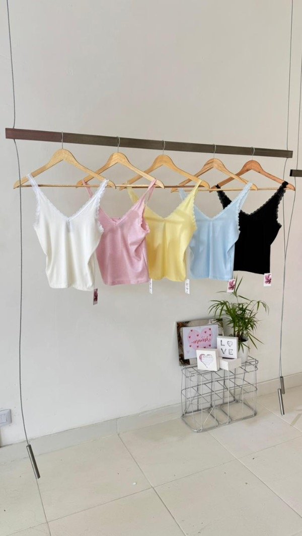 Musculosa de algodón con ly calada y con detalle de puntilla en bretel. Talle único, abarca de un S al L
