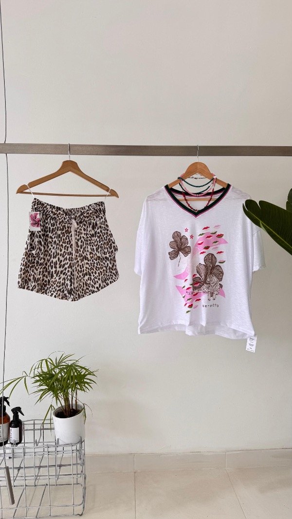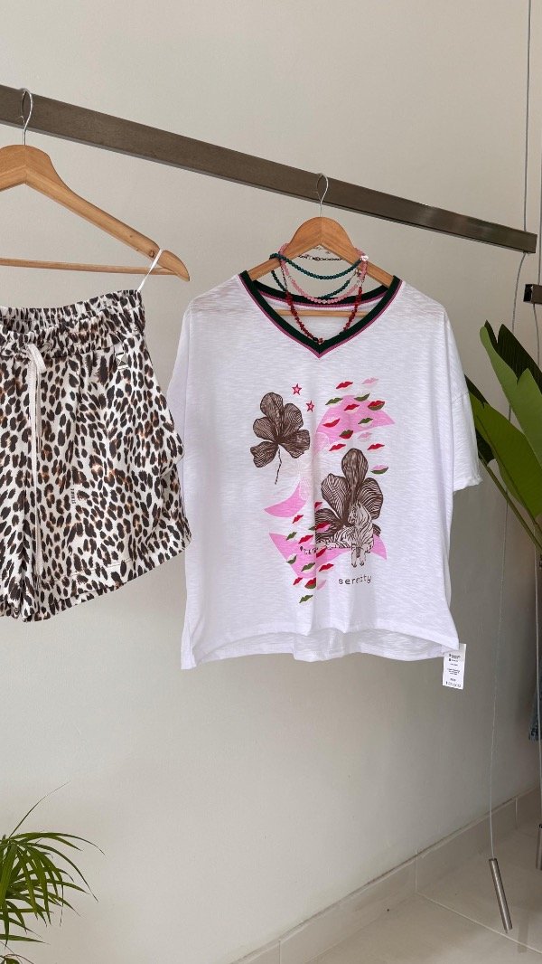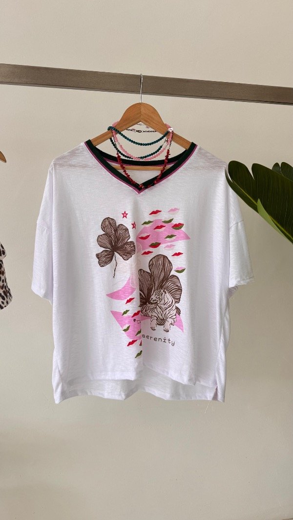 Remera basica de algodón con detalle de cuello de color. Talle único, abarca de un S al L