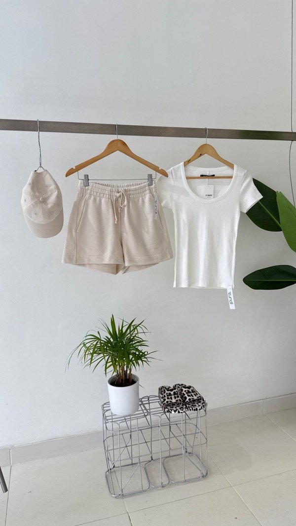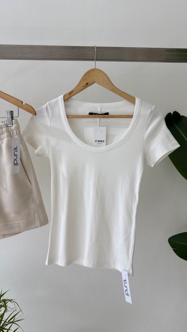 Remera de morley básica con escote redondo profundo y mangas cortas.