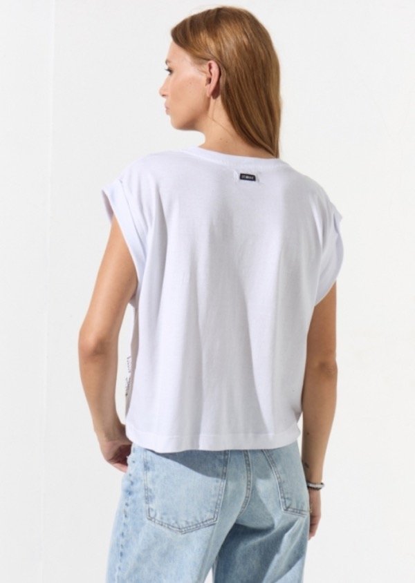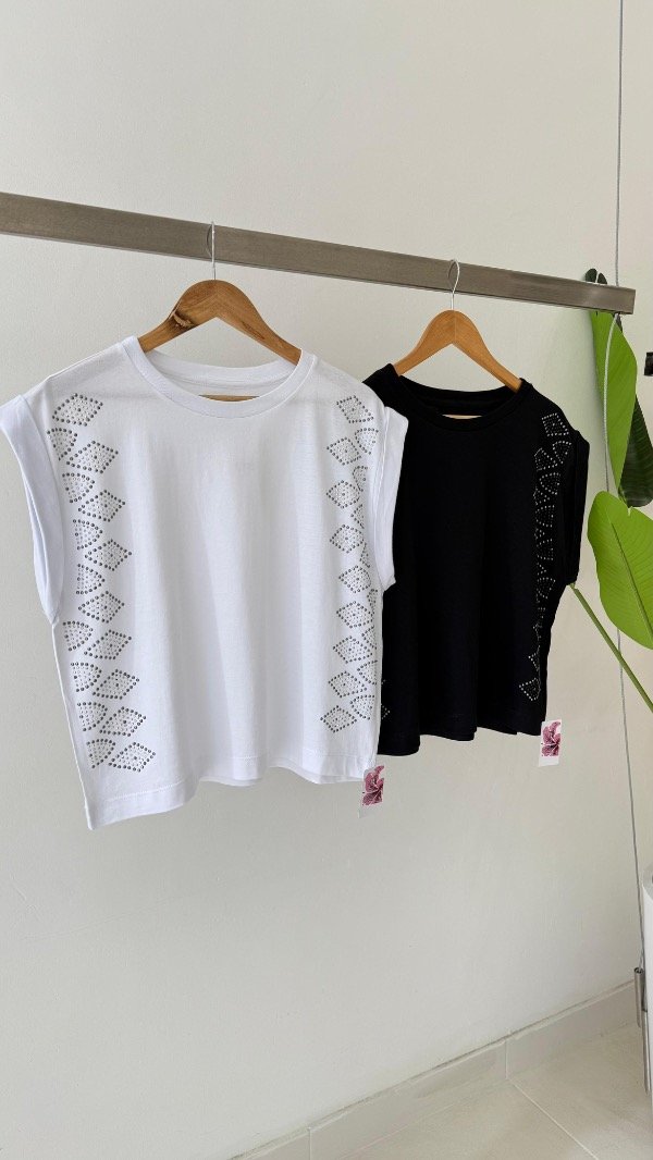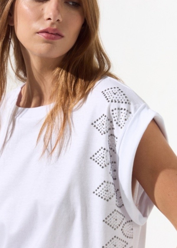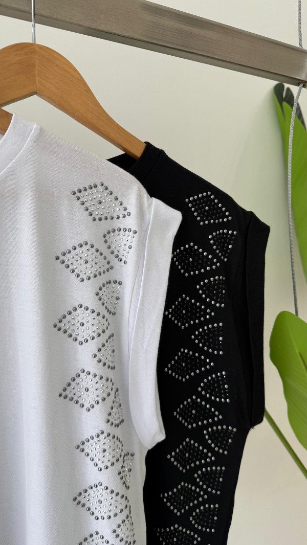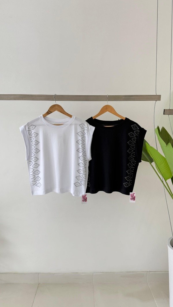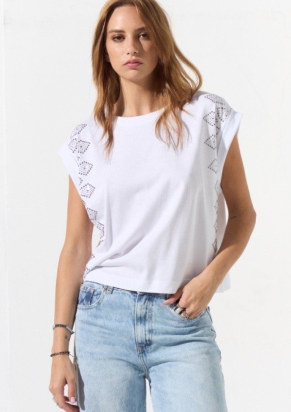 Remera de jersey sin mangas y cuello a la base con tachas en laterales