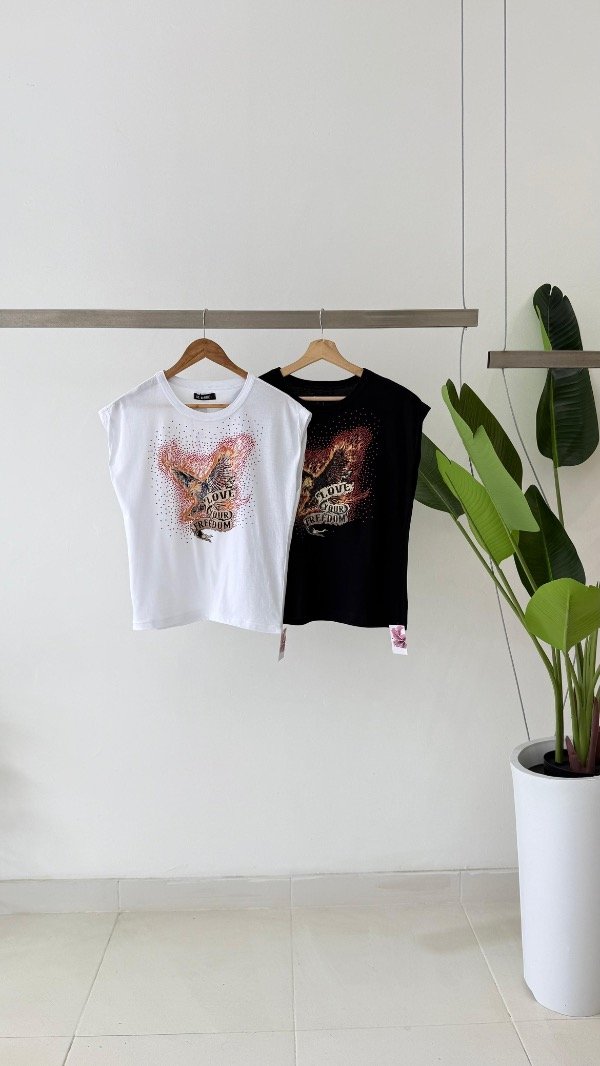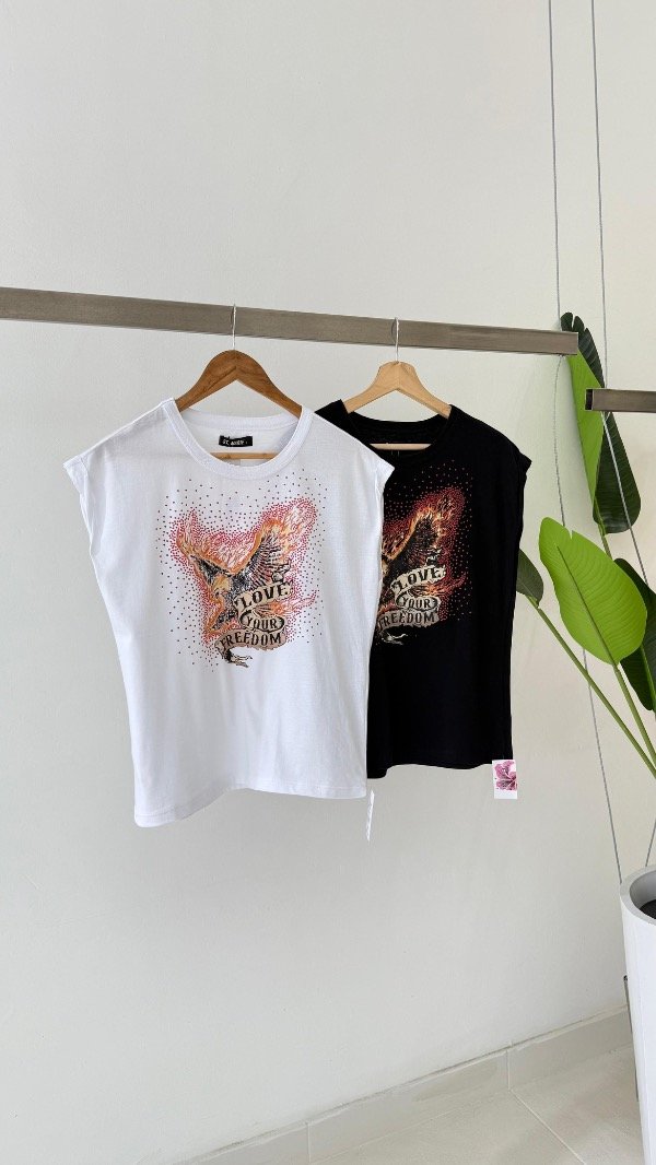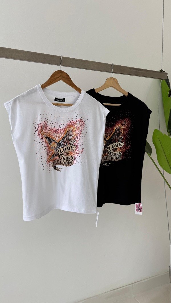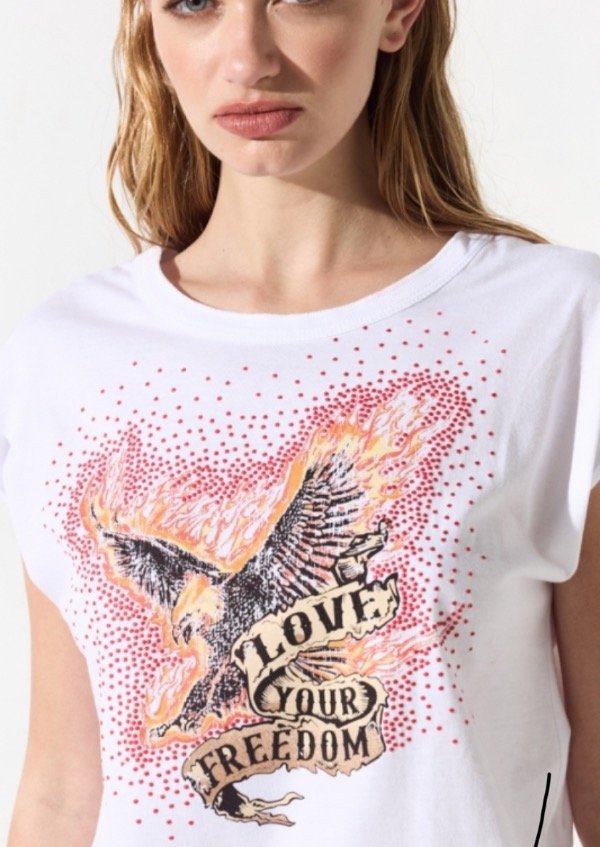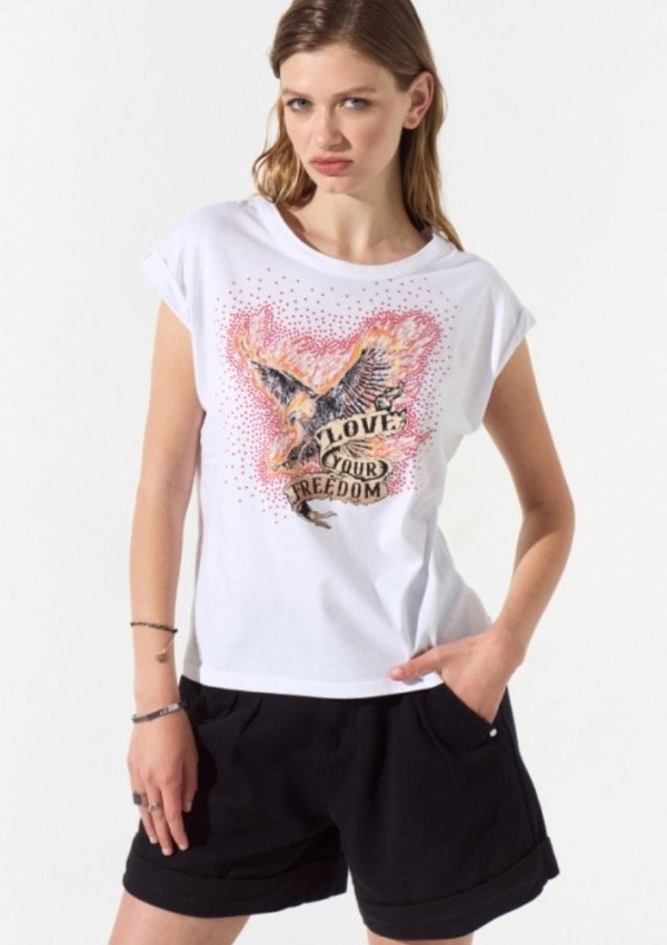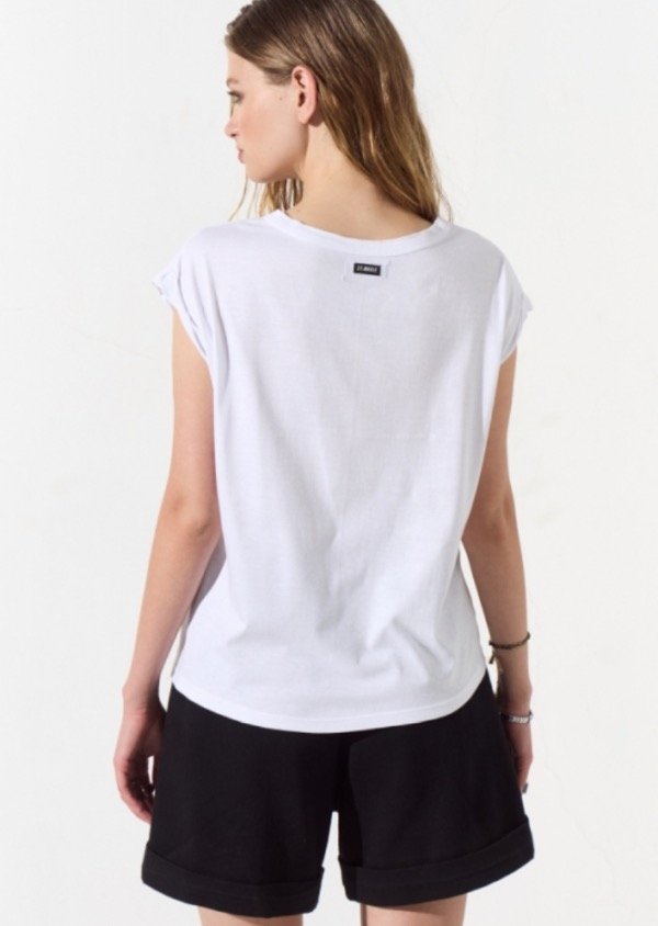 Remera estampada de corte clásico, en el centro de la espalda lleva una grifa con identificación de marca.