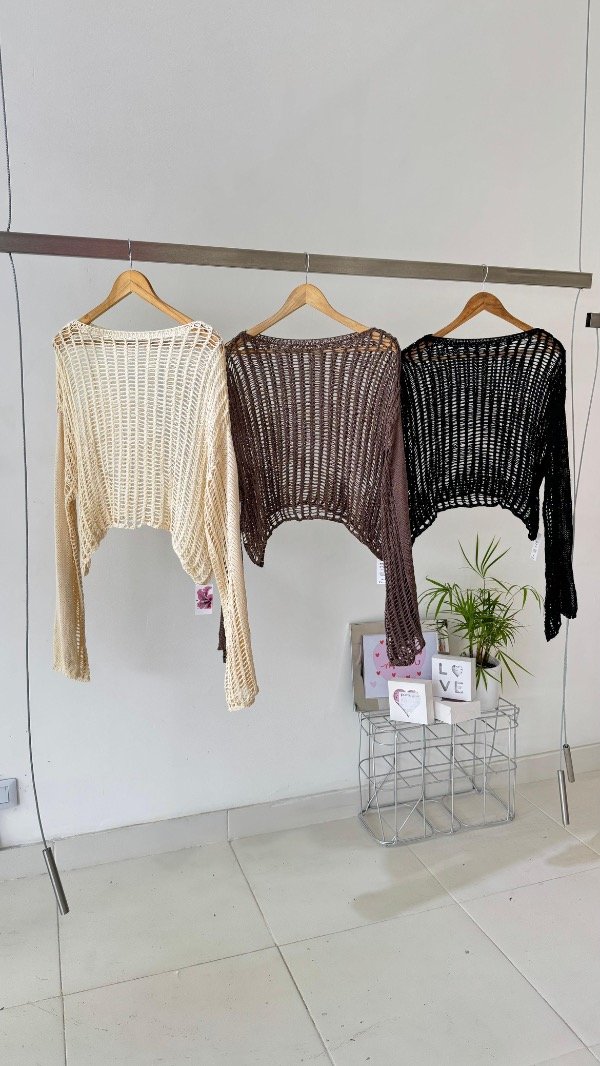 Sweater al crochet de hilo de algodón con destellos. Talle único, abarca de un S al L