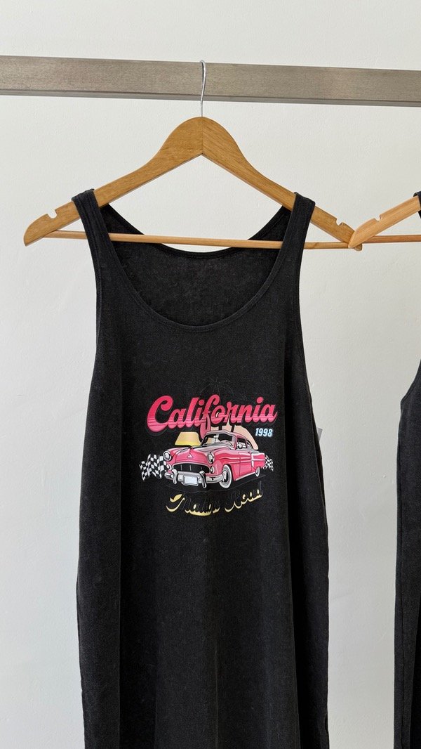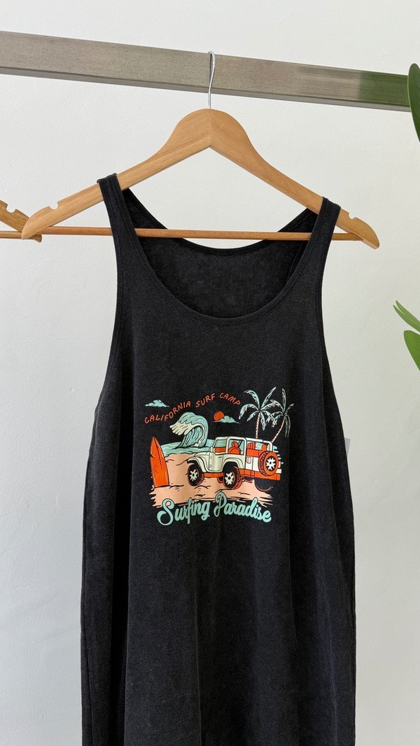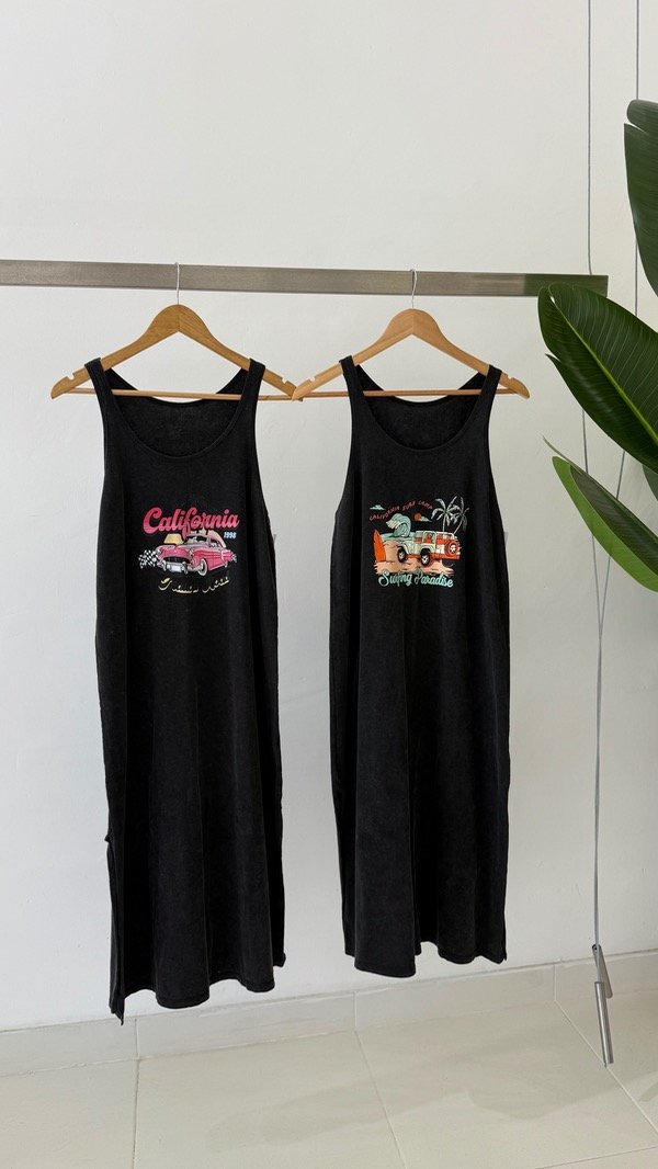 Vestido de algodón corte midi musculosa con estampa delantera. Talle único, abarca de un S al L